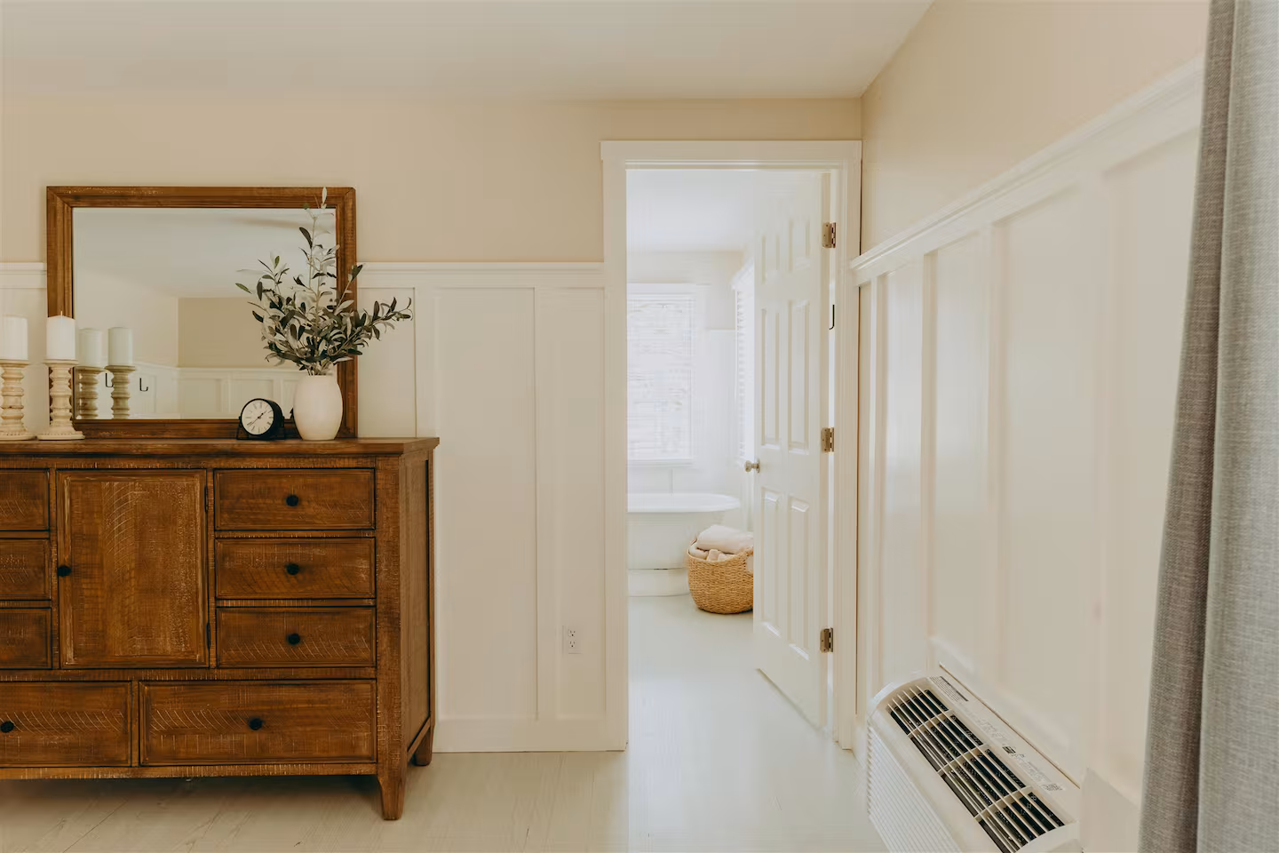 Bedroom 1 | King Master Suite with Private Bath May 15–17 | $1,825 (All-Inclusive) Early Bird: $1,725 (Save $100) Early bird pricing ends April 2 The King Master Suite is a spacious, light-filled sanctuary intentionally designed for deep, uninterrupted rest. This room features a plush king bed, a private ensuite bathroom, and ample space to quietly unwind between retreat offerings. Your stay includes full access to our all-inclusive Mother’s Retreat experience, taking place May 15th–17th. Guests will enjoy gently guided yoga, deeply restorative massage, nourishing chef-prepared meals, intimate mother’s circles, reflective journaling and creative time, peaceful nature walks, evenings by the fire pit, and generous space for rest woven throughout each day. With a small, thoughtfully curated group of approximately eight mothers, the retreat offers a sense of privacy, ease, and being genuinely cared for. Every detail is handled for you so you can fully arrive, soften, and receive. Check-in is at 4:00pm on Friday, May 15th, and check-out is at 5:00pm on Sunday, May 17th, allowing for an unhurried arrival and a spacious, grounded closing day. This room is ideal for the mother seeking quiet luxury, personal space, and a deeply restorative retreat experience.