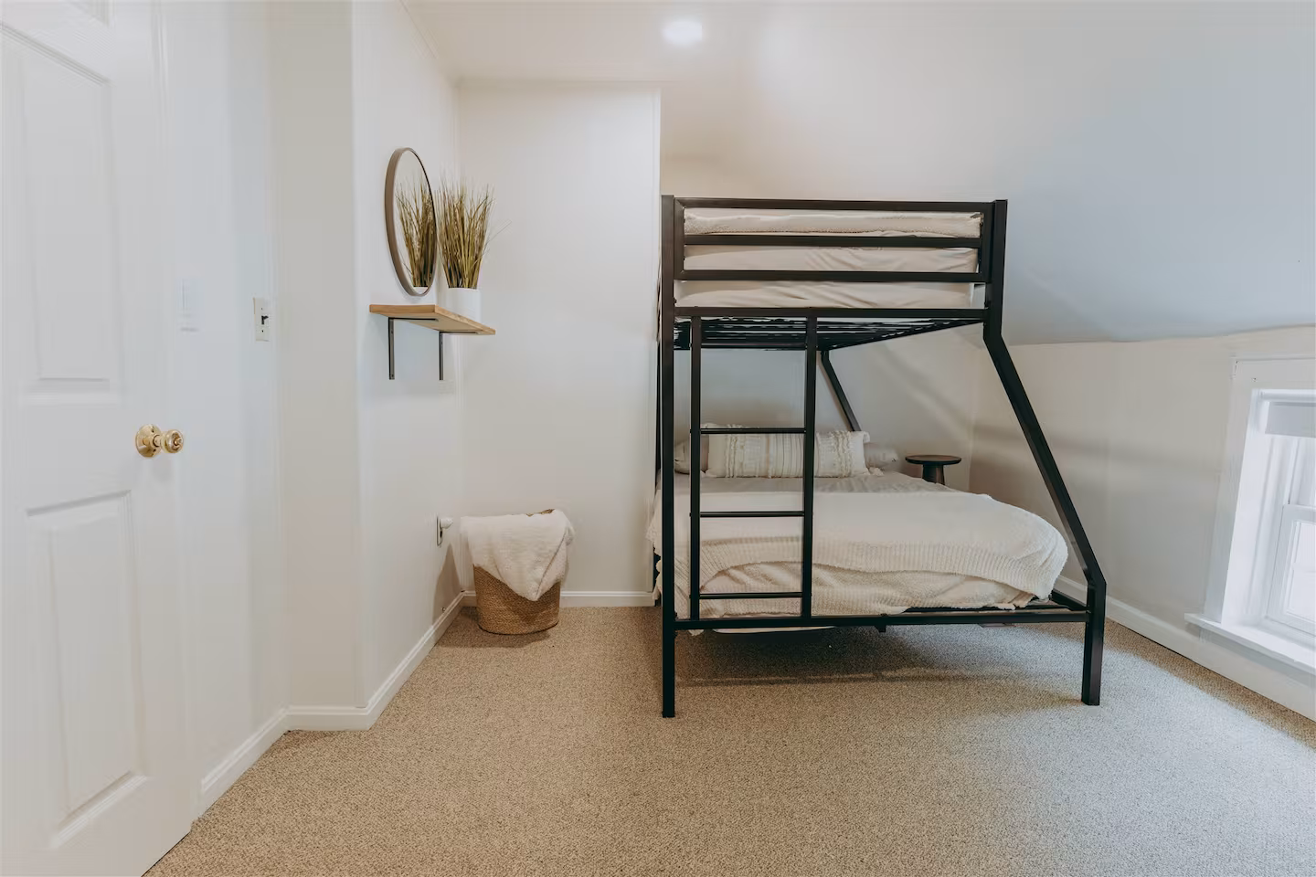 Twin Bed | The Sleepover Room Shared Bathroom May 15–17 | $1,270 (All-Inclusive) Early Bird: $1,170 (Save $100) Early bird pricing ends April 2 This is the most communal and playful room of the retreat — perfect for mothers who value togetherness, shared experience, and the fun of a grown-up sleepover. Designed for connection over privacy, this room celebrates the magic that happens when rest is shared. The Sleepover Room sleeps three mothers total and includes a queen bottom bunk, a twin top bunk, and a separate twin bed. Each bed is booked individually, and all guests in this room enjoy the same full retreat experience as every other participant. This booking is for the separate twin bed in a shared room that sleeps three mothers. The room also includes a queen bottom bunk and a twin top bunk, occupied by other guests. This twin bed offers a bit more ease than the bunk while still embracing the shared nature of the room. It’s a great option for mothers who want strong connection, shared presence, and a cozy place to rest. Your stay includes the entire Mother’s Retreat experience, including: Gentle yoga and embodied rest practices One restorative massage All meals and snacks prepared with care Mother’s circles and facilitated group time Journaling and creative exploration Farm walks and outdoor time Fire pit evenings Generous, unstructured rest time This room is often where friendships deepen quickly — through shared mornings, late-night conversations, and the reminder that rest doesn’t have to happen alone.